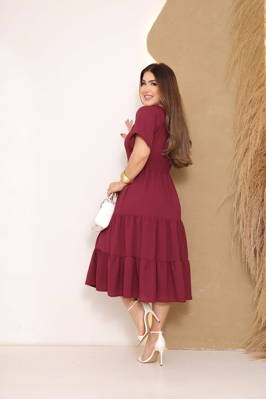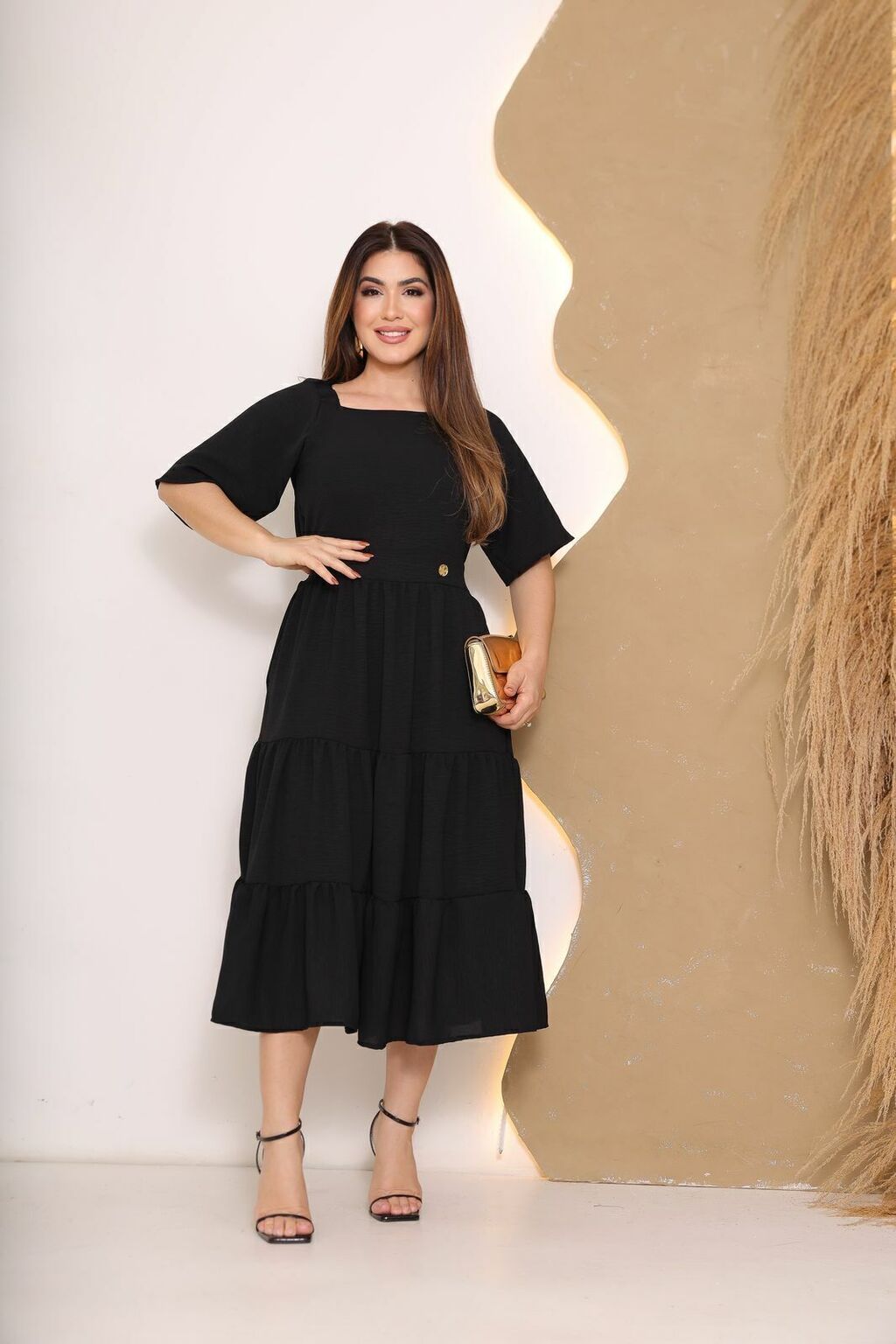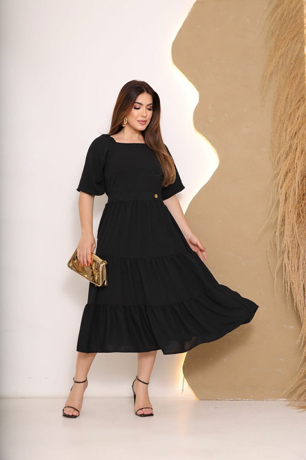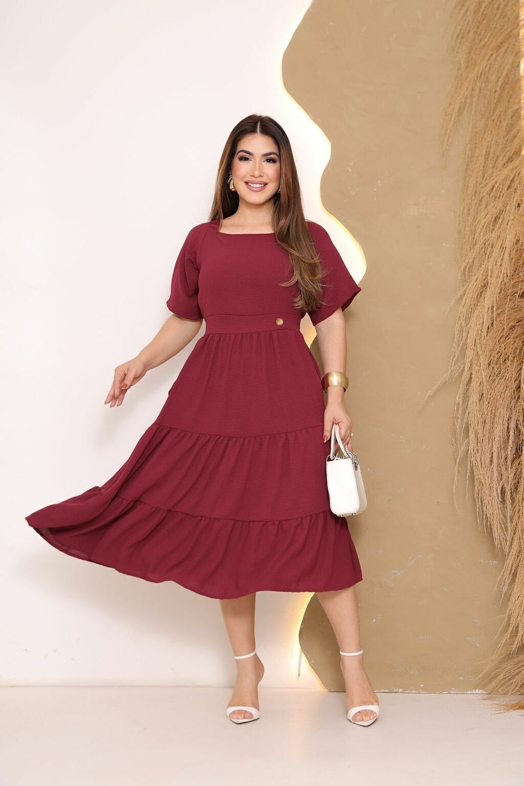 Este deslumbrante vestido midi no modelo evase é a escolha perfeita para quem busca um visual sofisticado e confortável.